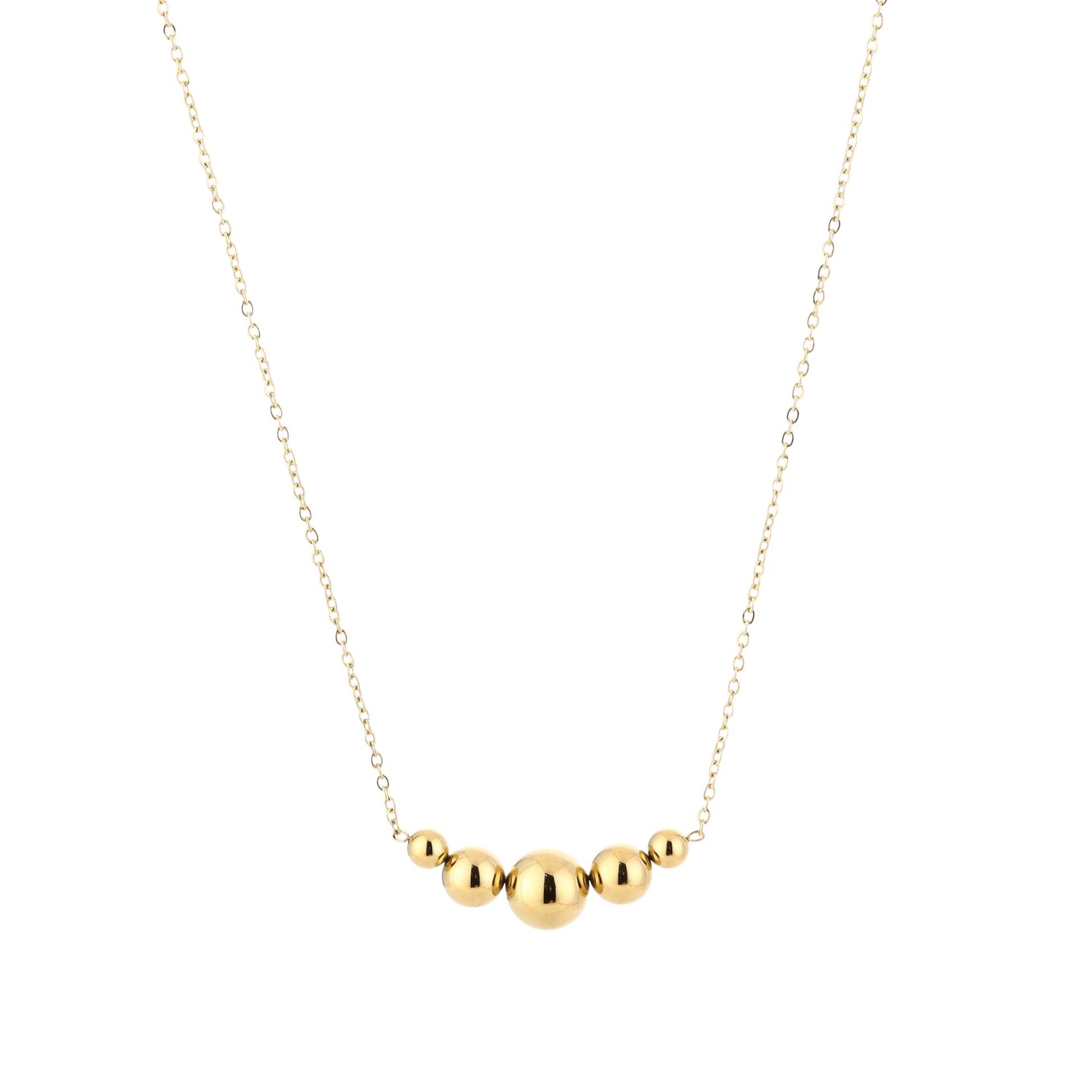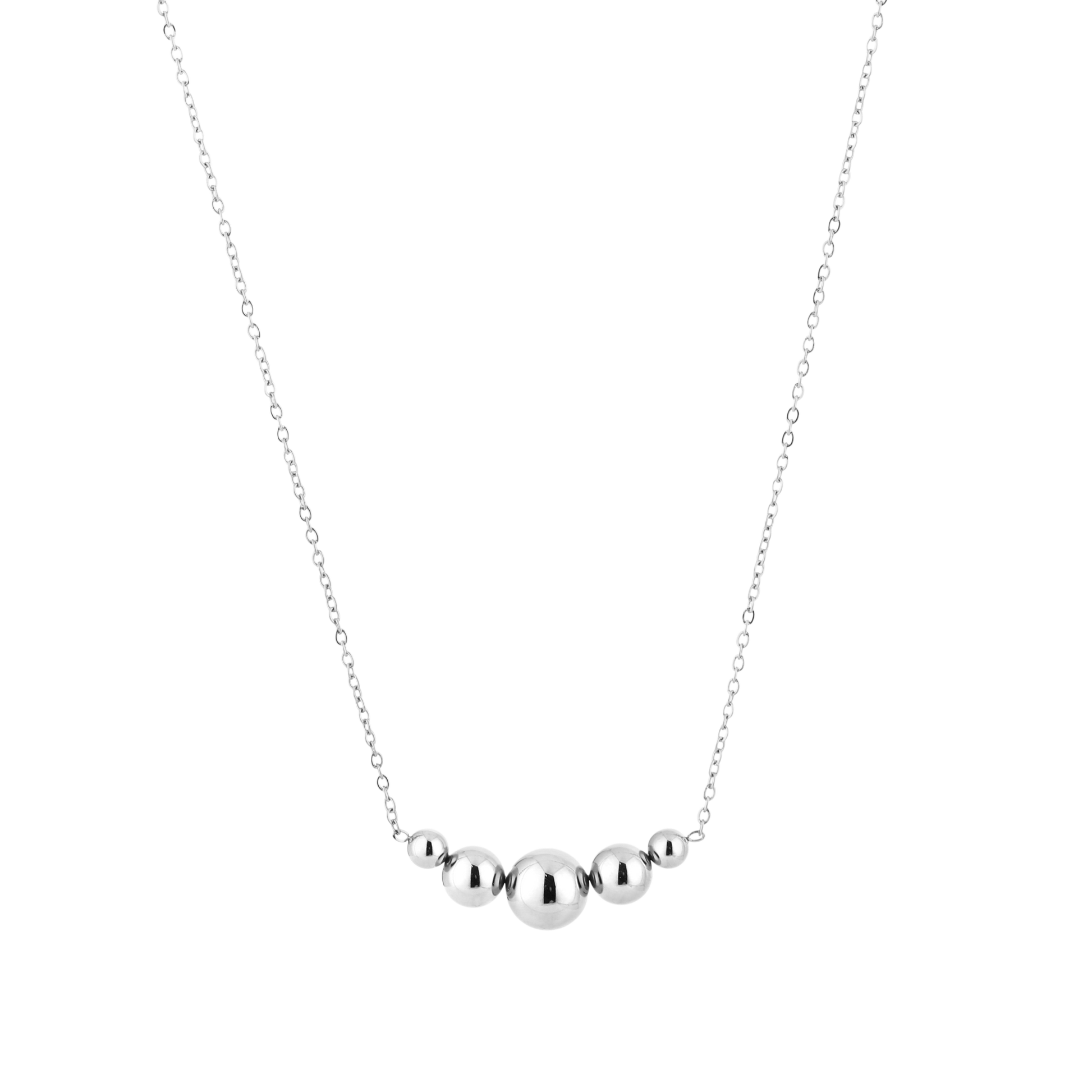 De Balance Line Ketting straalt eenvoud en verfijning uit. Met vijf perfect gevormde bollen in een harmonieuze lijn is dit sieraad een tijdloze toevoeging aan je collectie. Gemaakt van roestvrijstaal, waardoor de ketting niet verkleurt en zijn prachtige glans behoudt. Ideaal om solo te dragen voor een minimalistische look of te combineren met andere kettingen voor een gelaagd effect.