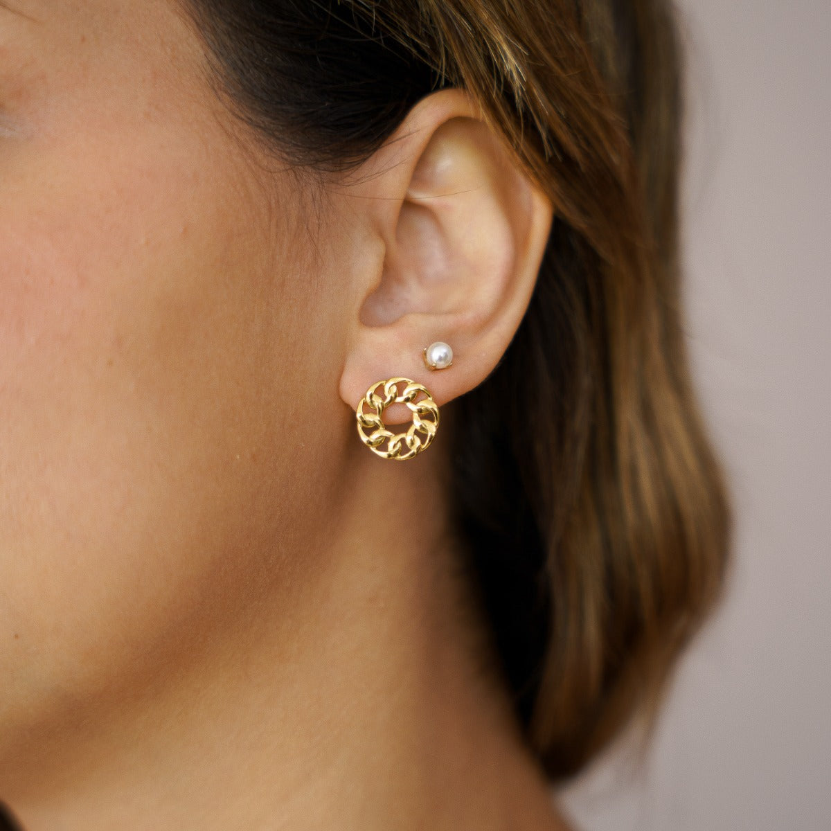 De Chain Circle Studs zijn stoere oorknopjes in de vorm van een schakelpaneel. Deze oorbellen geven een krachtige en moderne uitstraling aan elke look en zijn ideaal voor dagelijks gebruik.