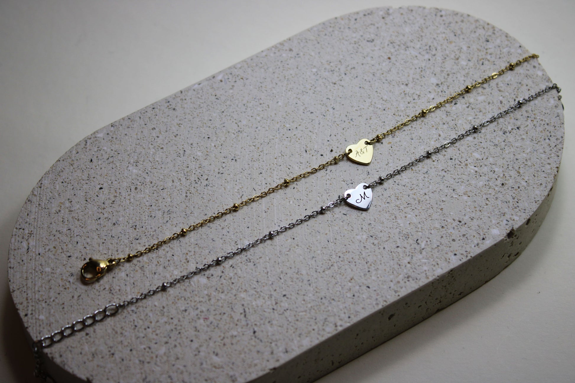 De Engraved Mini Heart Armband is een subtiel en verfijnd sieraad met een klein hartvormig bedeltje dat gegraveerd kan worden met maximaal 3 karakters. Kies een initiaal met betekenis en draag een persoonlijk detail dat symbool staat voor jezelf of iemand die je dierbaar is.