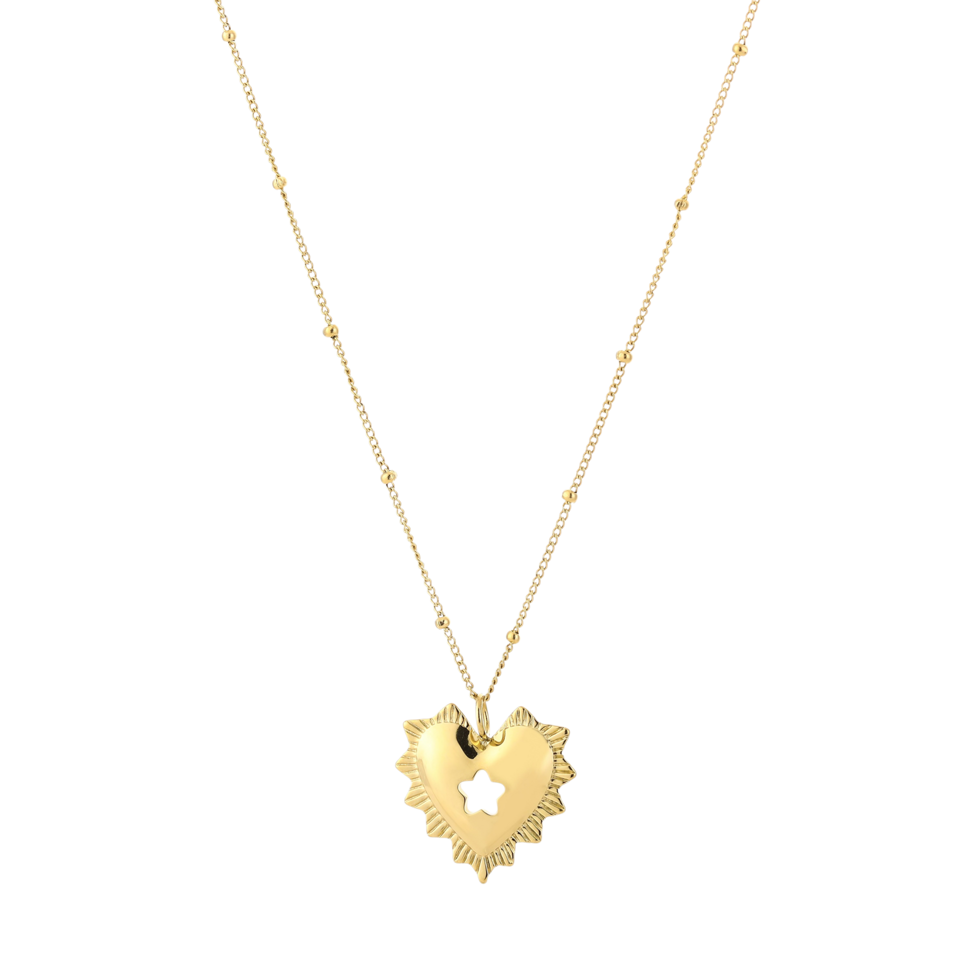 De Star Heart Ketting is een tijdloos sieraad met een unieke twist. Het hartvormige hangertje is voorzien van een uitgesneden ster in het midden en heeft een verfijnde, golvende rand voor extra charme. De subtiele kralen in de ketting geven het geheel een speelse en elegante uitstraling. Gemaakt van hoogwaardig roestvrijstaal, waardoor de ketting niet verkleurt en jarenlang mooi blijft. Perfect te combineren met andere minimalistische kettingen voor een gelaagde look.
