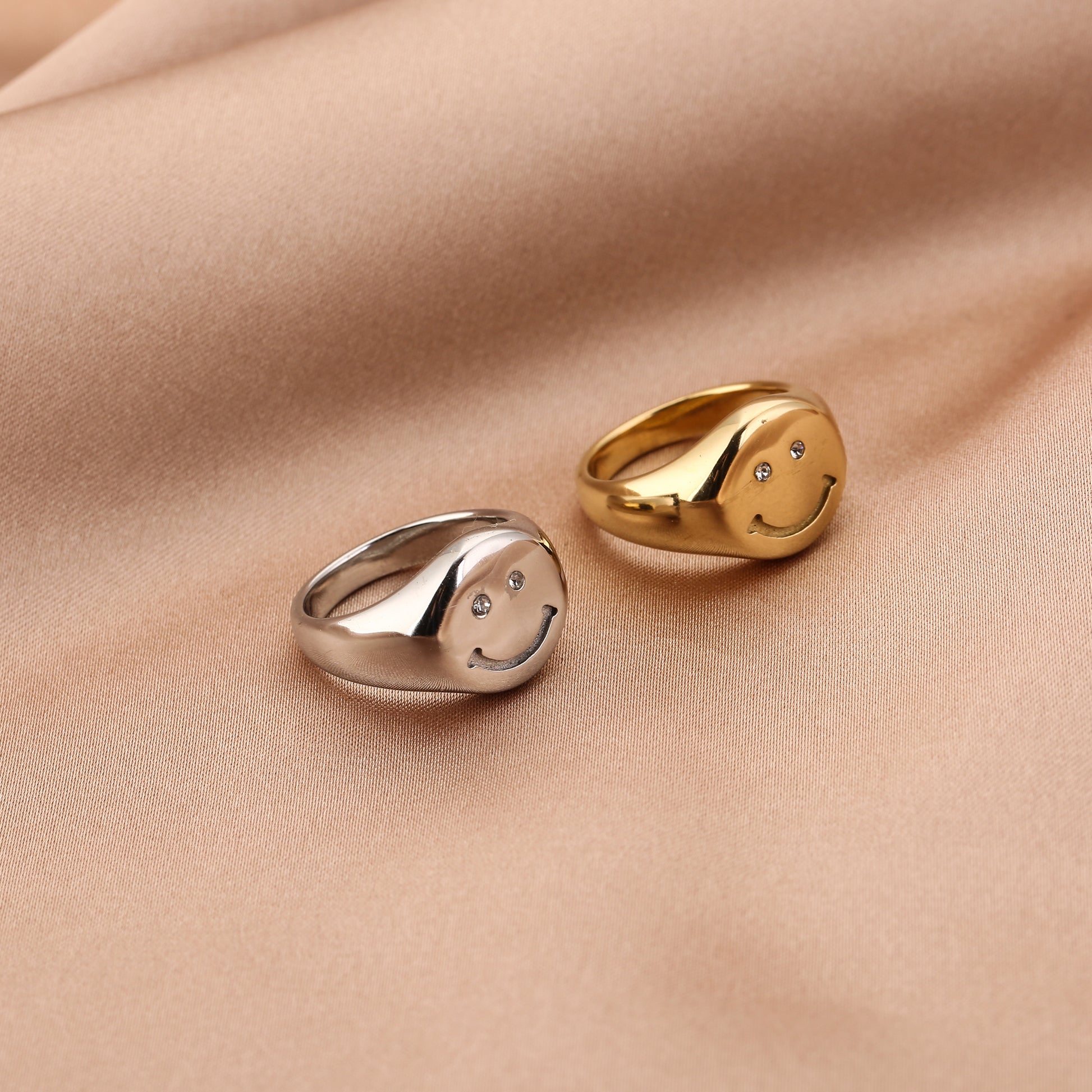 De Happy Vibes Ring is jouw dagelijkse reminder om te glimlachen. Met een vrolijke smiley en subtiele steentjes als ogen, brengt deze ring meteen een positieve energie met zich mee. Een opvallend detail voor iedere hand, perfect om los te dragen of te combineren met andere ringen.