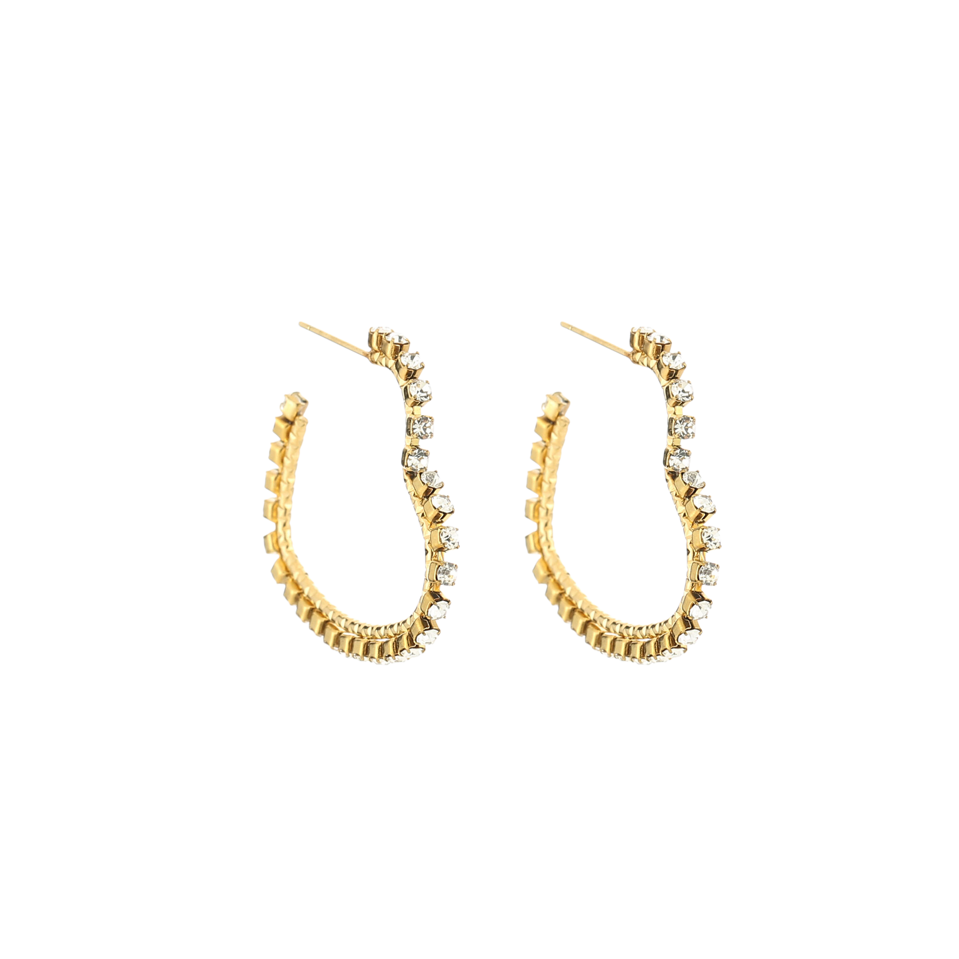 De Heart Sparkle Oorbellen brengen een elegante fonkeling samen met een zacht, hartvormig design dat subtiel door de gebogen vorm heen loopt. De rij schitterende zirkonia stenen zorgt voor een luxueuze uitstraling, terwijl de vloeiende vorm perfect aansluit bij elke stijlvolle look.