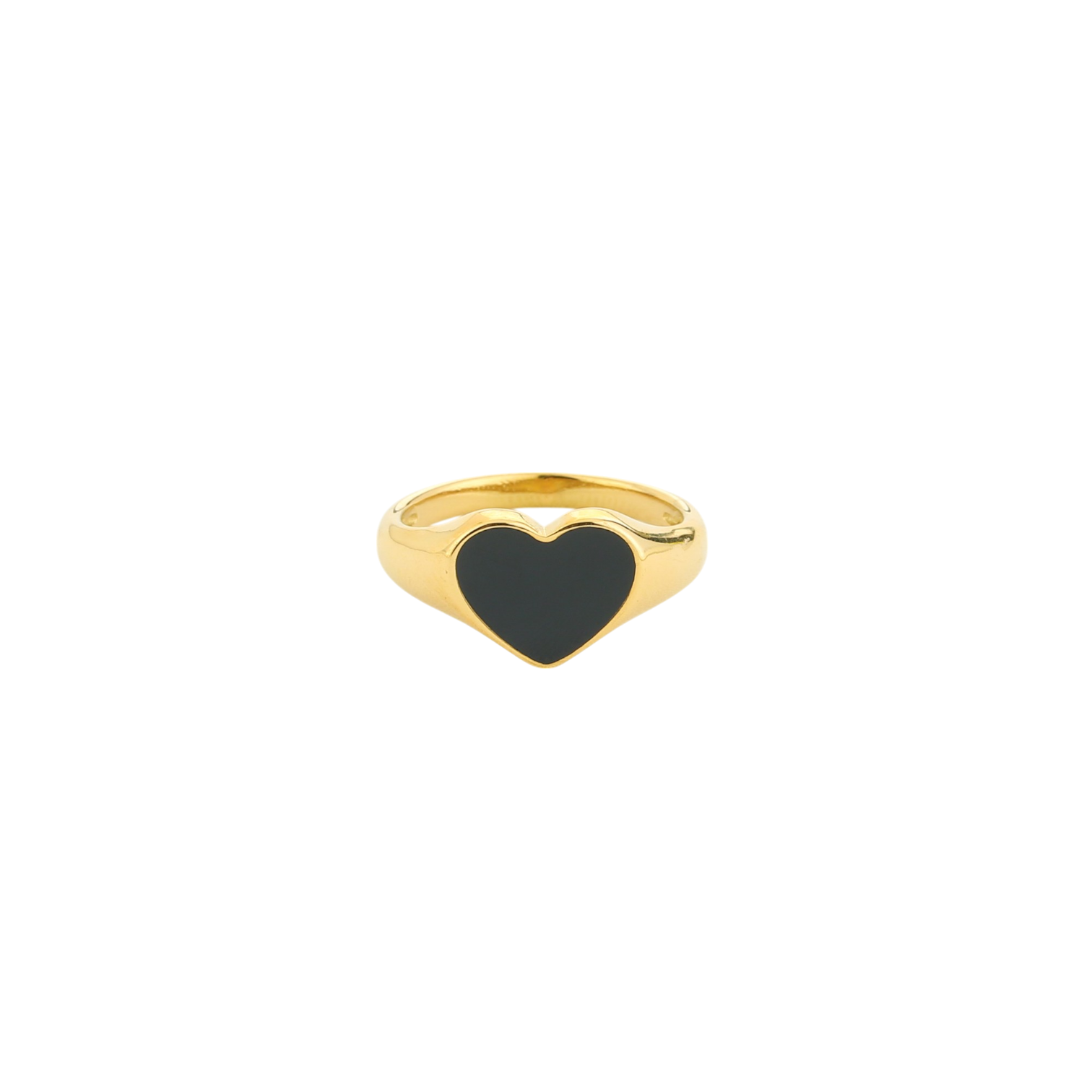 Geef een edgy twist aan je look met de Midnight Heart Ring. De zwarte hartvormige steen maakt van deze ring een opvallend statement item dat je eenvoudig combineert met andere sieraden. Gemaakt van roestvrijstaal en waterproof, dus hij blijft altijd mooi.
