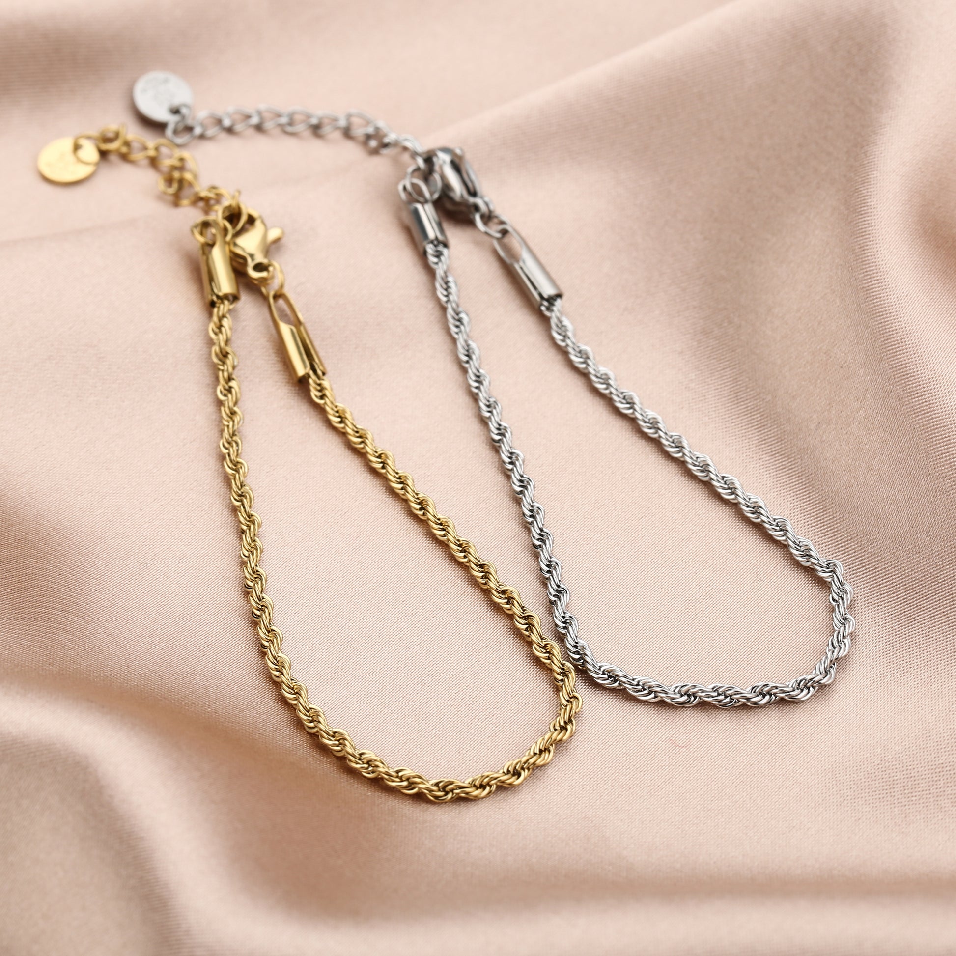 De Rope Chain Armband is een klassieker die nooit uit de mode raakt. Met het subtiel gevlochten design geeft deze armband je outfit een chique, maar toch stoere uitstraling. Combineer hem moeiteloos met andere armbanden of draag ‘m solo voor een minimalistische look.