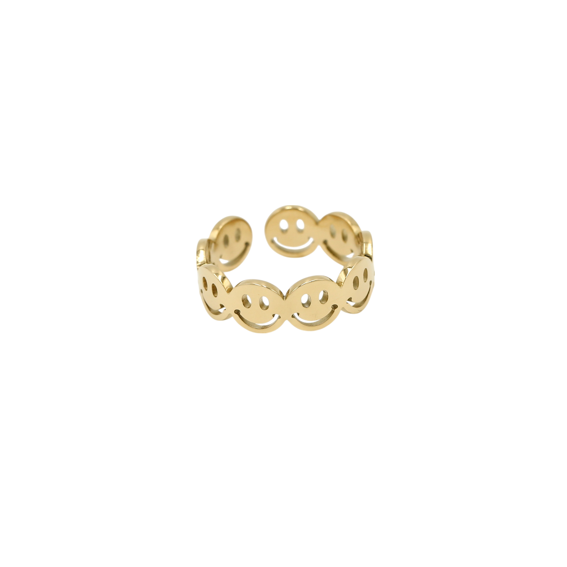 De Smiley Loop Ring is dé ring voor wie houdt van een positieve vibe. Met een speels ontwerp van aaneengeschakelde smiley-gezichten straal je vrolijkheid uit bij elke beweging van je hand. Deze open ring is verstelbaar en draagt comfortabel de hele dag door. Leuk om solo te dragen of te combineren met andere favorieten voor een unieke stacking-look.