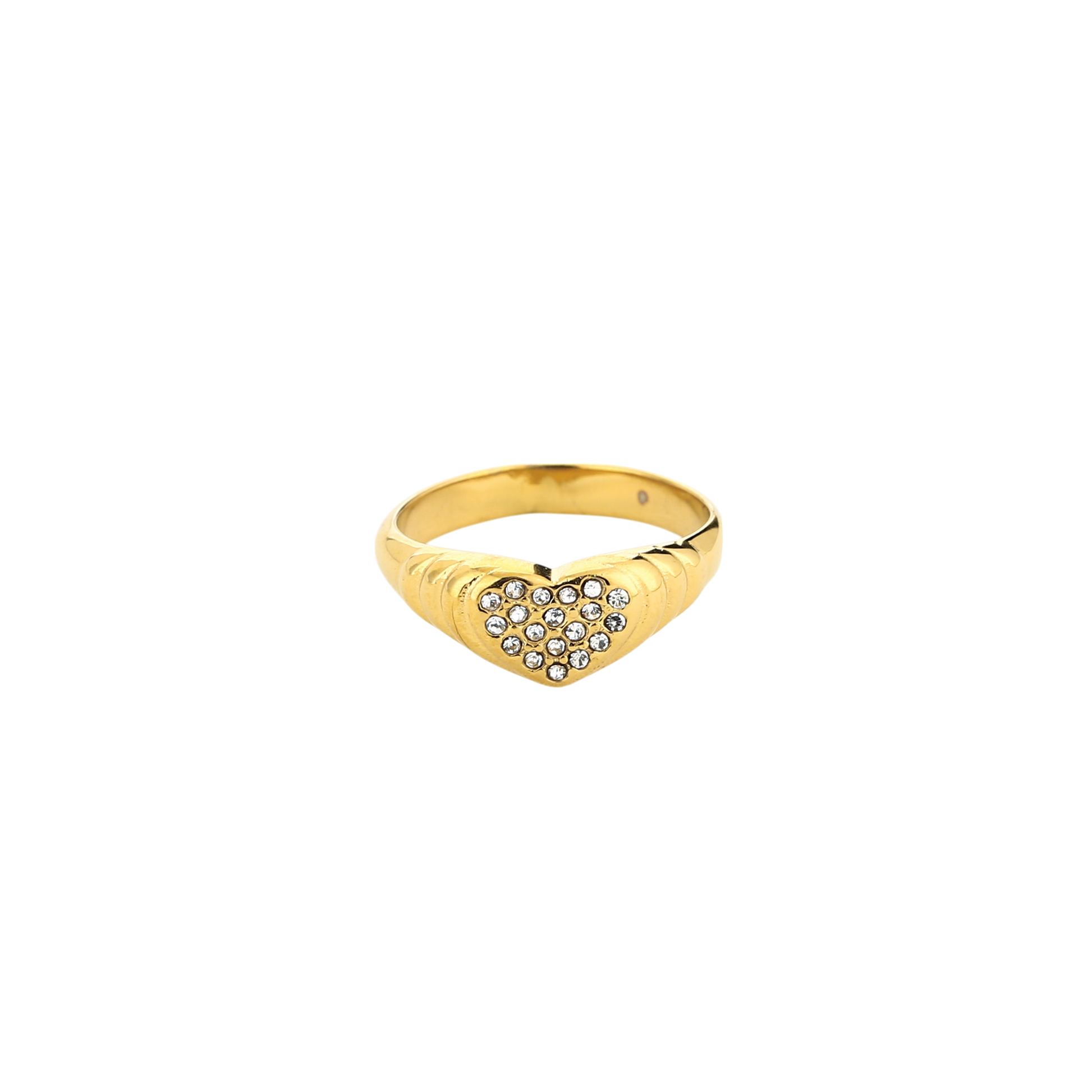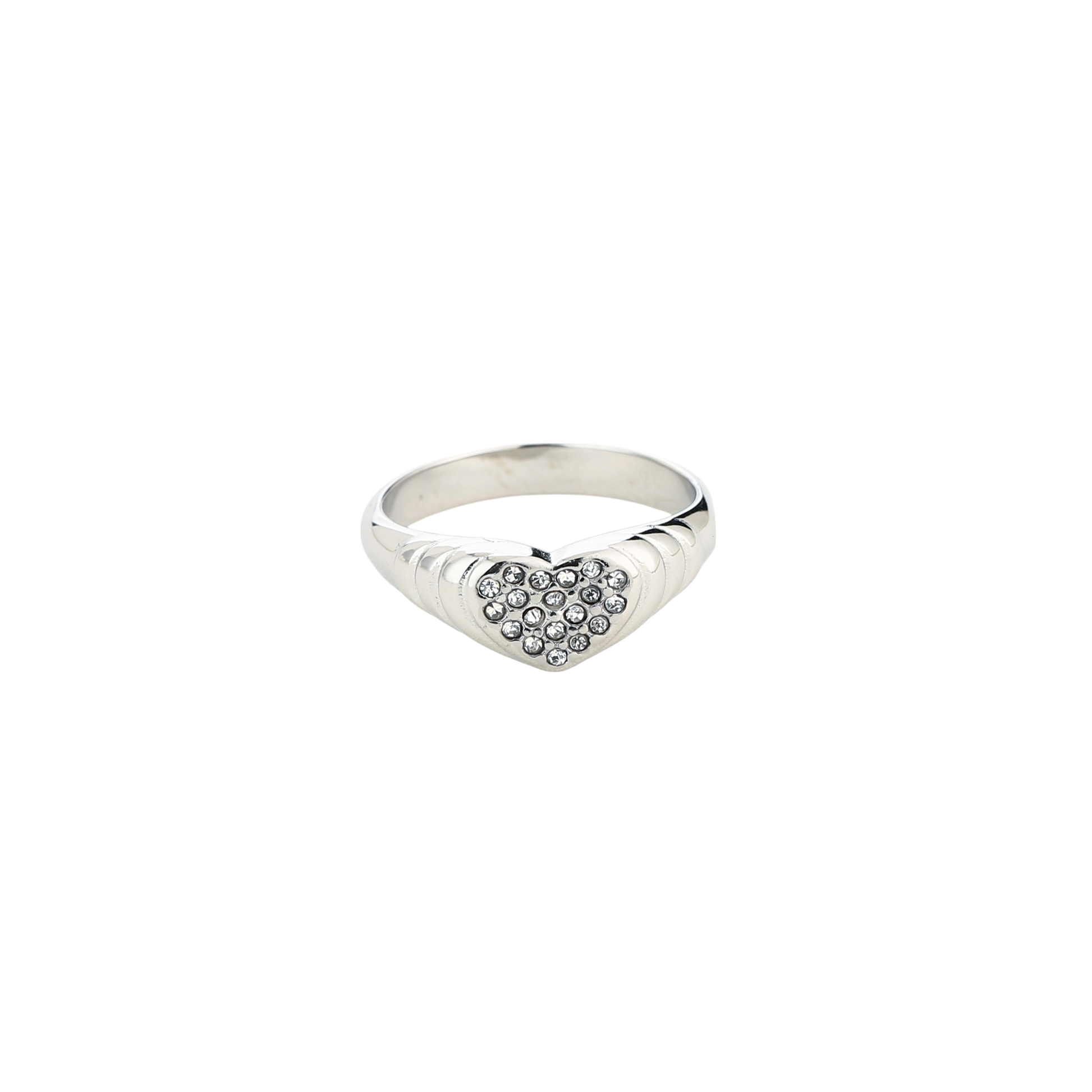 De Sparkling Heart Ring is een echte eyecatcher voor wie houdt van liefdevolle details en een sprankelende touch. Het hartvormige design is rijkelijk bezet met fonkelende steentjes die het licht prachtig vangen. De subtiele lijnen op de band geven de ring een stijlvolle, vintage look. Draag deze ring solo voor een statement of combineer ‘m met andere favorieten voor een speelse mix. Perfect als gift of om jezelf te verwennen.
