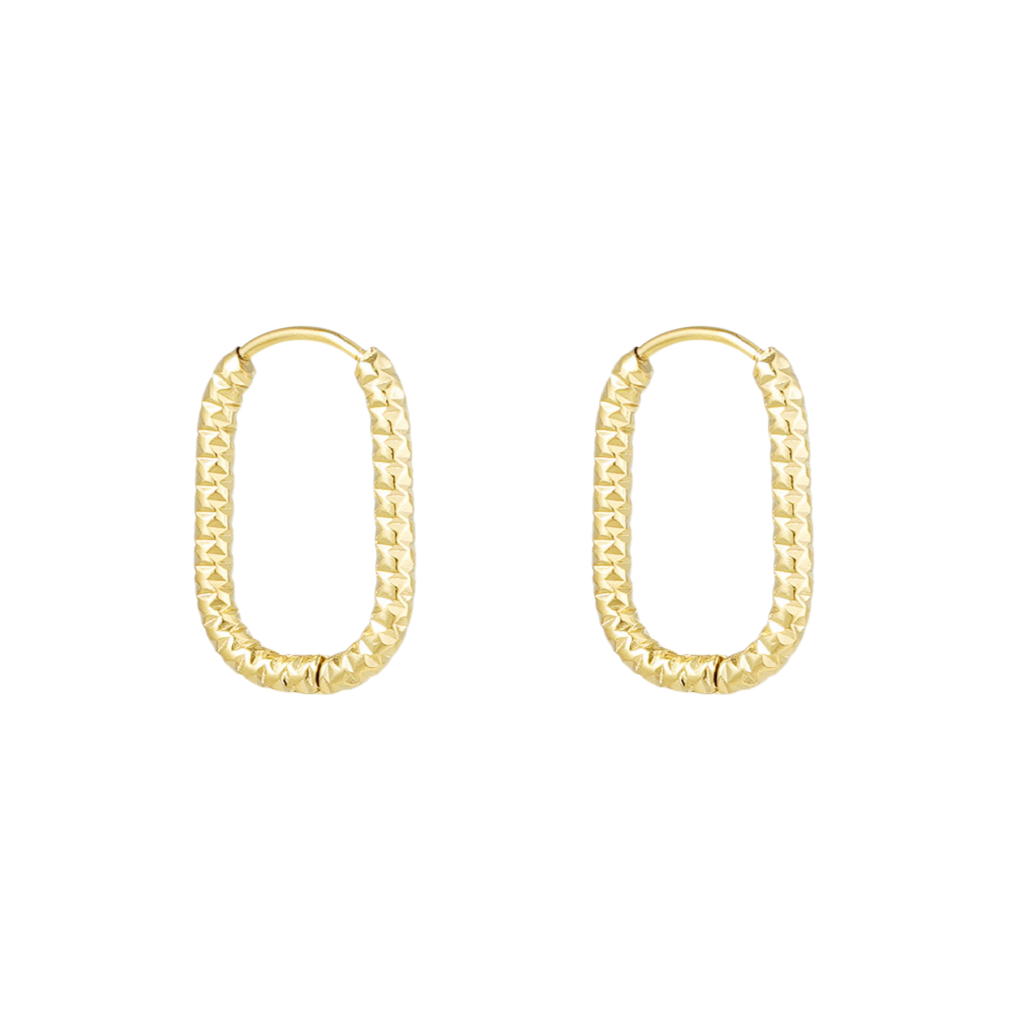 De Textured Oval Hoops combineren een strakke vorm met een opvallend reliëf. De gehamerde afwerking geeft deze ovale oorbellen een speelse glans en moderne twist, terwijl het licht er subtiel op weerkaatst. Perfect als je net iets anders zoekt dan de standaard creool. Licht van gewicht, waterproof en geschikt voor dagelijks gebruik of een stijlvolle avondlook.