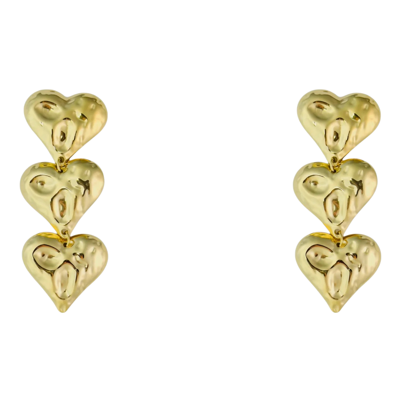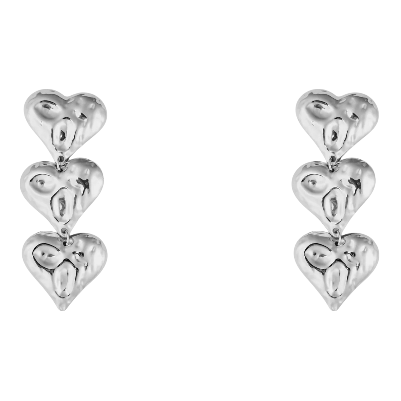 De Triple Heart oorbellen zijn een echte eyecatcher door het speelse ontwerp met drie glanzende hartjes onder elkaar. Ze geven je look een romantische en stijlvolle touch. Gemaakt van roestvrijstaal dat niet verkleurt.